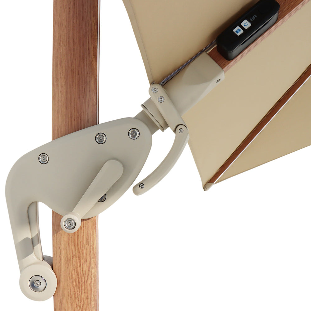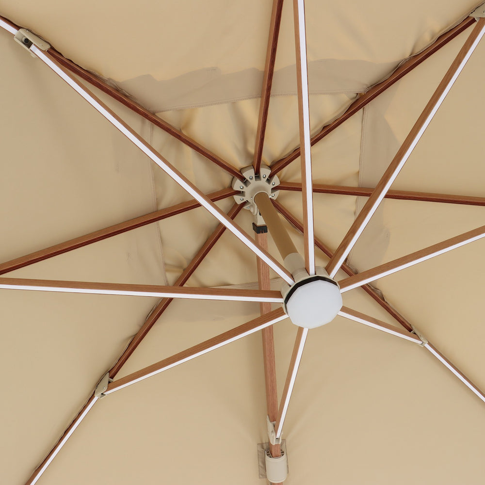 Bramblecrest Truro 3x3m Sand Square Cantilever Parasol with Wood Effect Pole, LED Light & Cover