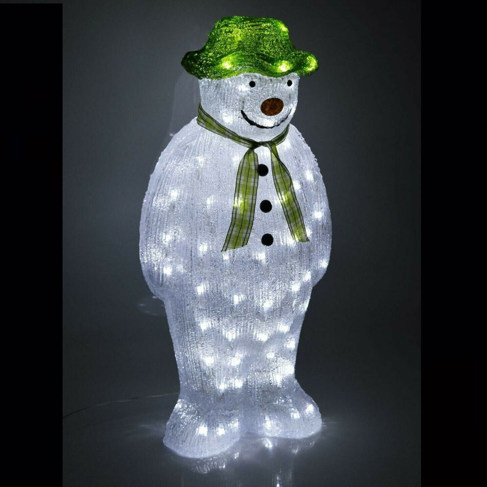 This cheerful acrylic Snowman statue has 100 White LEDs, perfect for brightening up your garden or interior. Suitable for garden displays, celebration table centrepieces or in the conservatory. Made from durable acrylic to ensure a strong body which will last for many years to come.