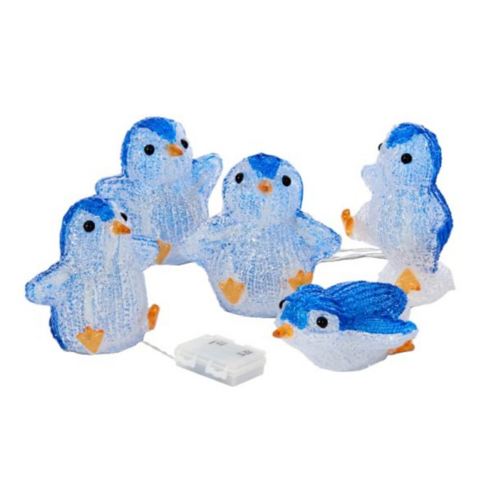 Enhance your home and garden with the festive spirit of Christmas using this 5-pack of InLit Ice Penguins. This set features 40 cool white LEDs, suitable for both outdoor and indoor use, with an auto timer and battery-powered design. Measuring 11.5xW6xD11cm, these ornaments are the perfect addition for your holiday decor.