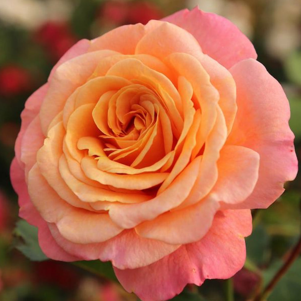 On an erect, bushy plant, rich, double blooms with an apricot-orange and deep pink flush bloom. Rose of the Year 2023 (Climbing Hybrid Tea). Flower Colour: Orange Fl... Read more