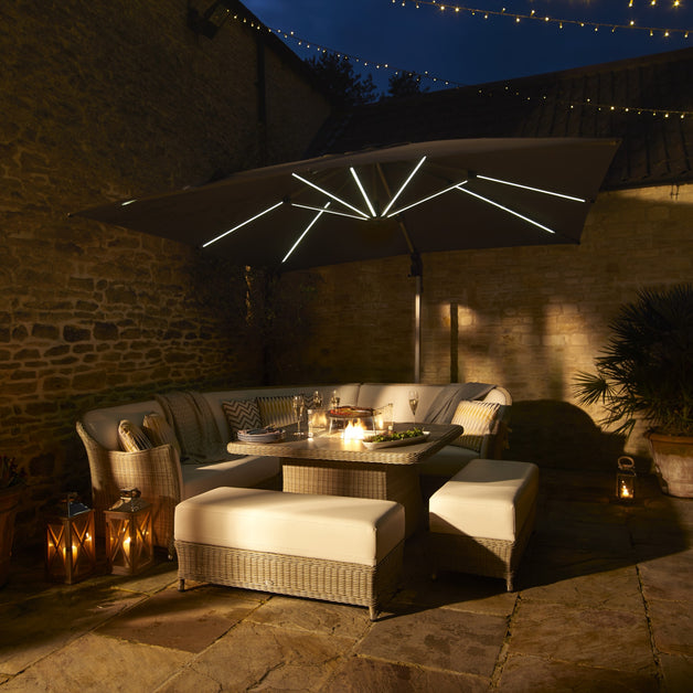 Add a garden parasol to keep cool this summer. Protect your self from the sun with one of our parasols or gazebos. Choose from a wide selection of shapes, sizes and colours to maximise your outdoor space. Some also have built in Bluetooth speakers and... Show more